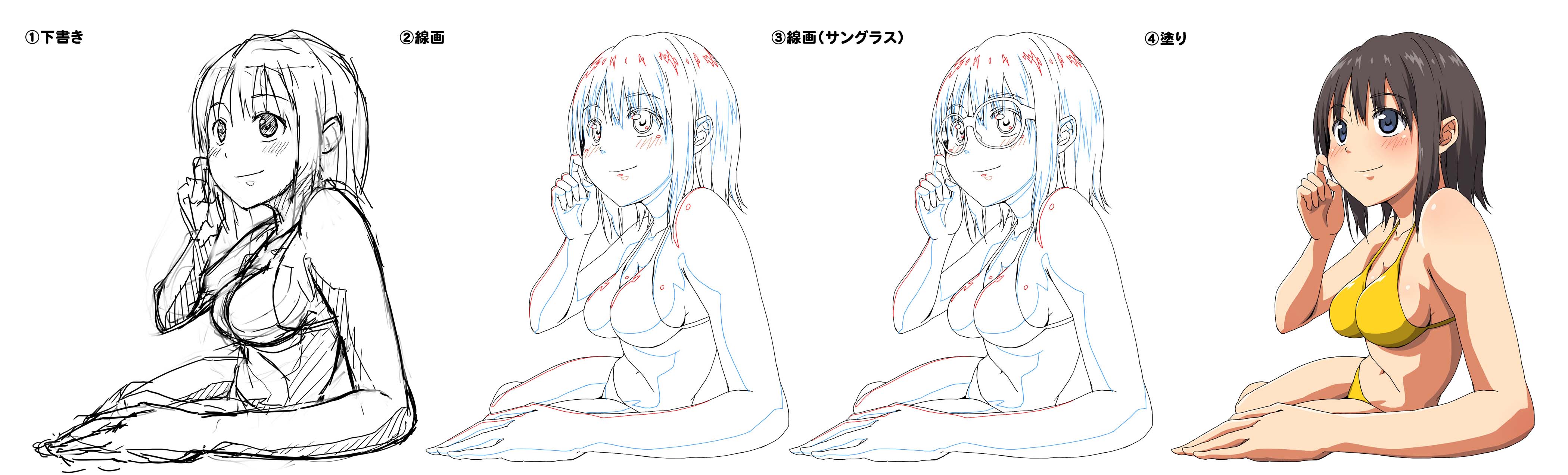 ↓下書きとか線画とか(下書きの顔の崩れ方が半端ない)